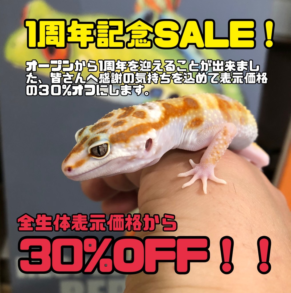 皆さまのおかげでオープンから1周年を迎える事が出来ました!感謝の気持ちを込めて生体を30%OFFにします。期間は6月30日までの期間限定です!